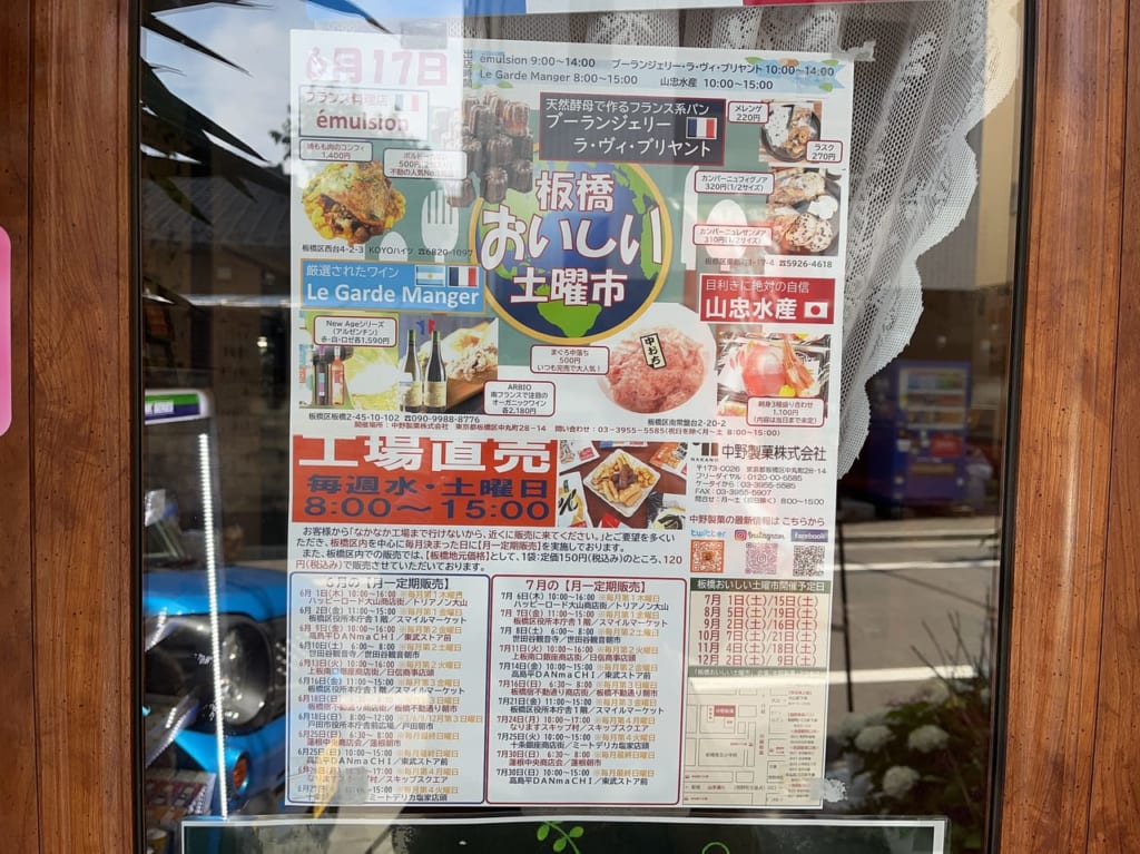 また、中野製菓は土曜市の開催会場となっています。次回は2022年6月18、7月2日、7月16日に開催予定です。お店の前にお知らせがありました。