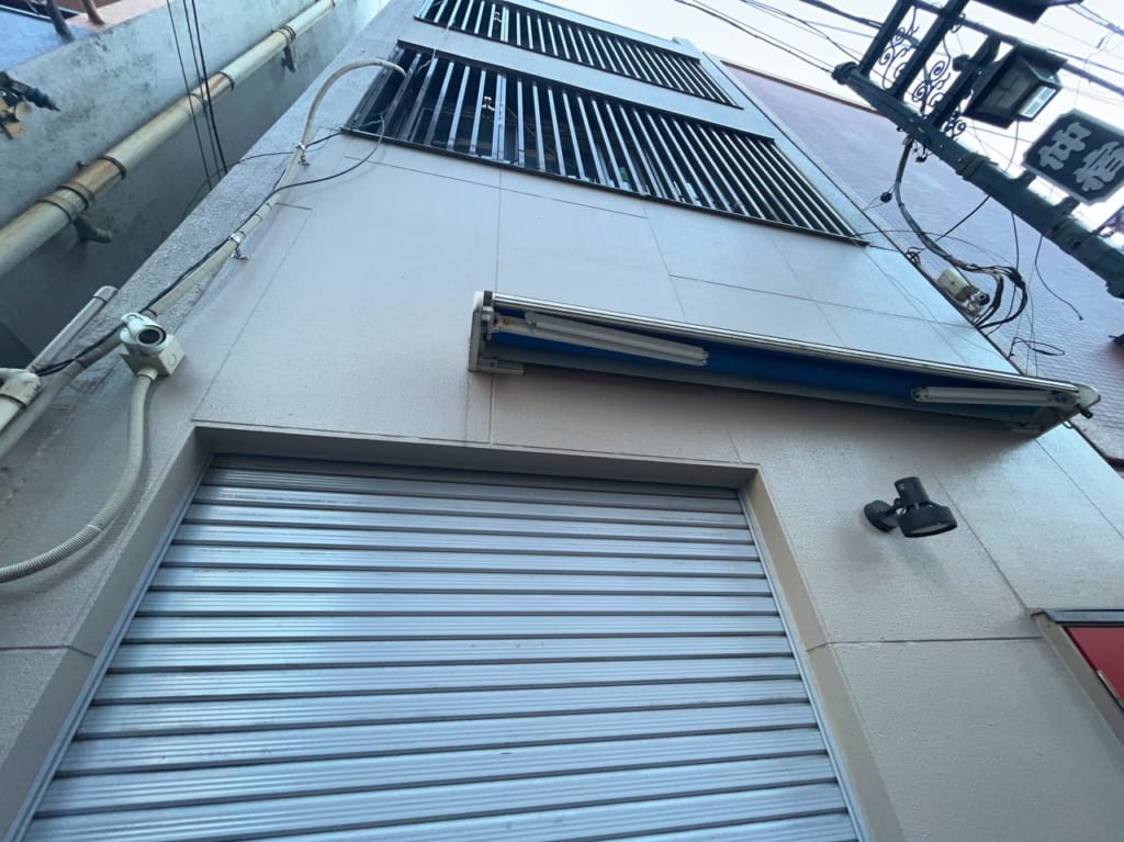 テナント募集の貼り紙です。斜め前には、ロータリーがあり、バス停もあります。交通機関が集まっている場所なので人も集まりますね。