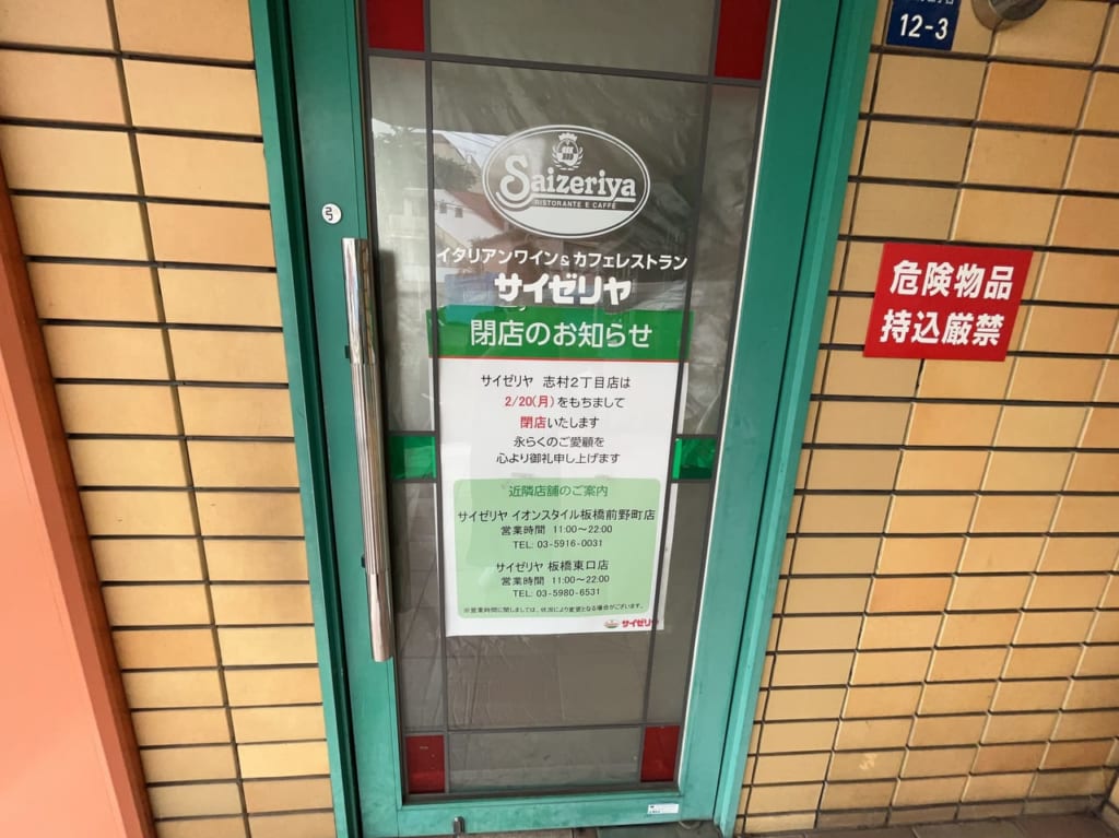 ひな翔から見て斜め右前には、2月に閉店したサイゼリヤ志村2丁目店が見えます。