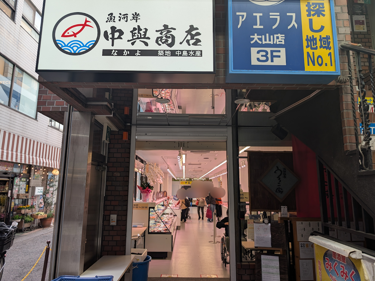 「中島水産」がオープンしたのは、かつて「大地屋書店」があった場所です。店舗の右側には大山駅があり、駅からのアクセスが良好です。左側に進むと川越街道へと続きます。同じビルの2階にはイタリアンレストラン「トマト」、地下には居酒屋「うろこ家」があります。