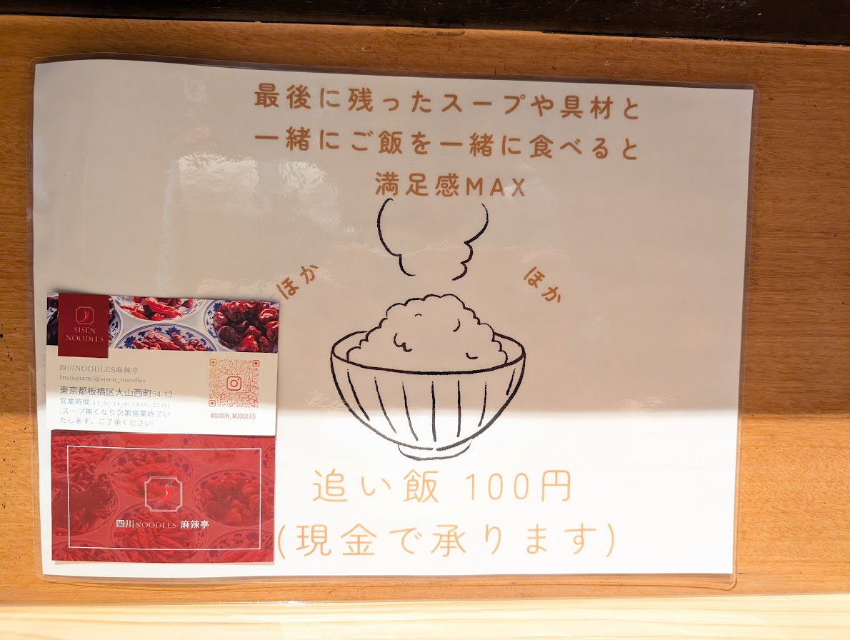 追い飯も100円で楽しめます!最後に残ったスープや具材と一緒にご飯を食べるとさらに満足感アップですね!