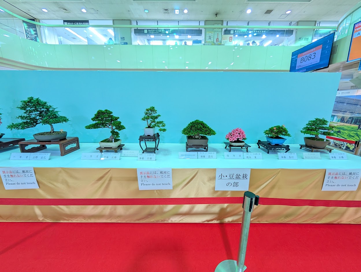 その傍らには、手のひらサイズの愛らしい豆盆栽も並び、さつきの奥深い魅力を感じさせてくれます。