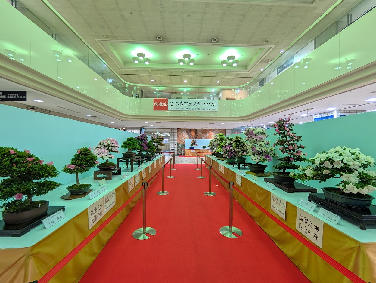 筆者もさっそく会場を訪れてみましたが、まず目を奪われたのは、高さ1メートルを超える豪華なさつきの盆栽たち。