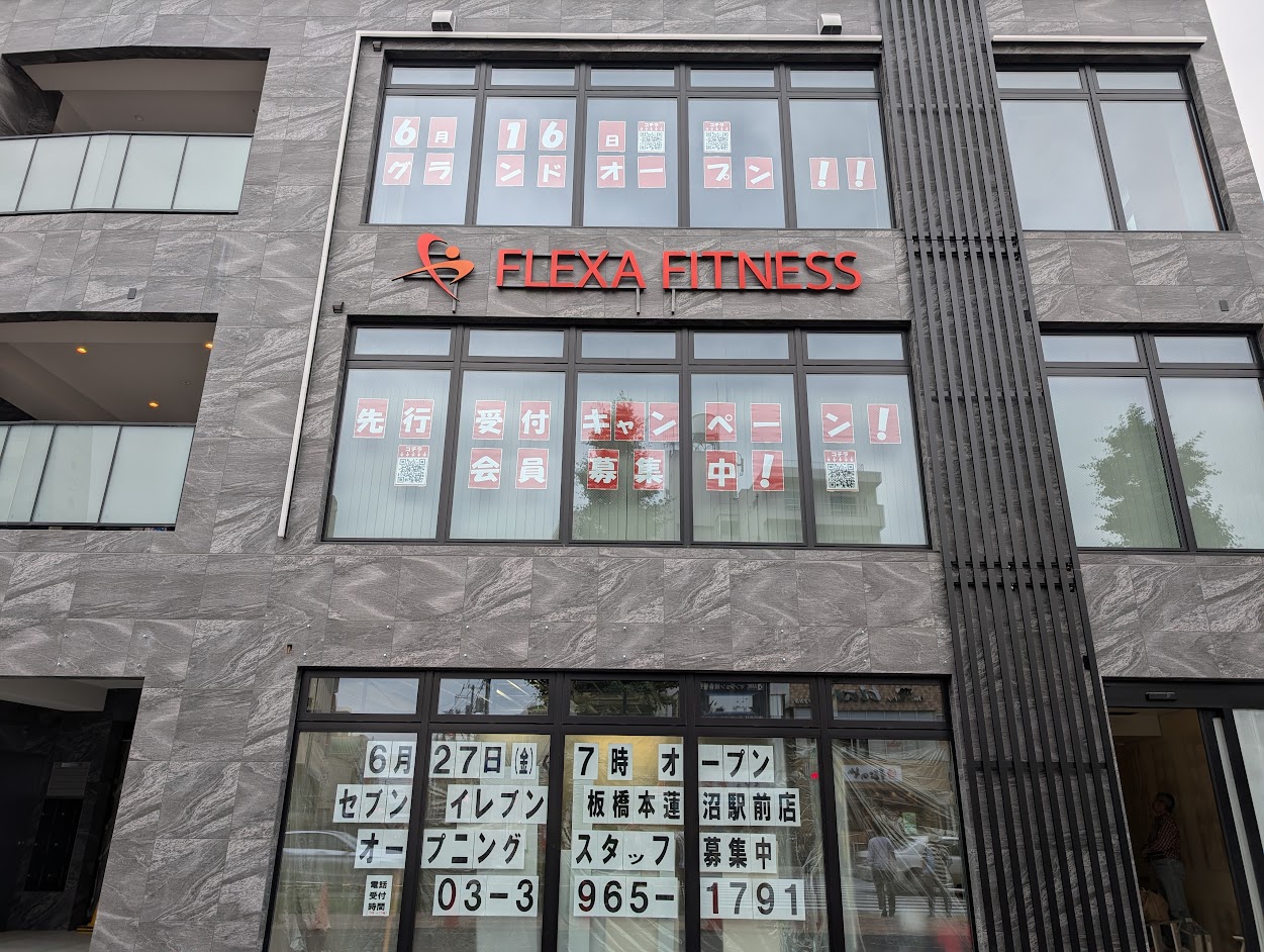 両店が並ぶ通りは、本蓮沼駅からすぐ。向かいには、以前「アミュズワン」があった跡地に新しいビルがほぼ完成しており、6月16日(月)に「FLEXA FITNESS」がグランドオープン、また、6月27日(金)にはセブンイレブン板橋本蓮沼駅前店が1階にオープン予定です。