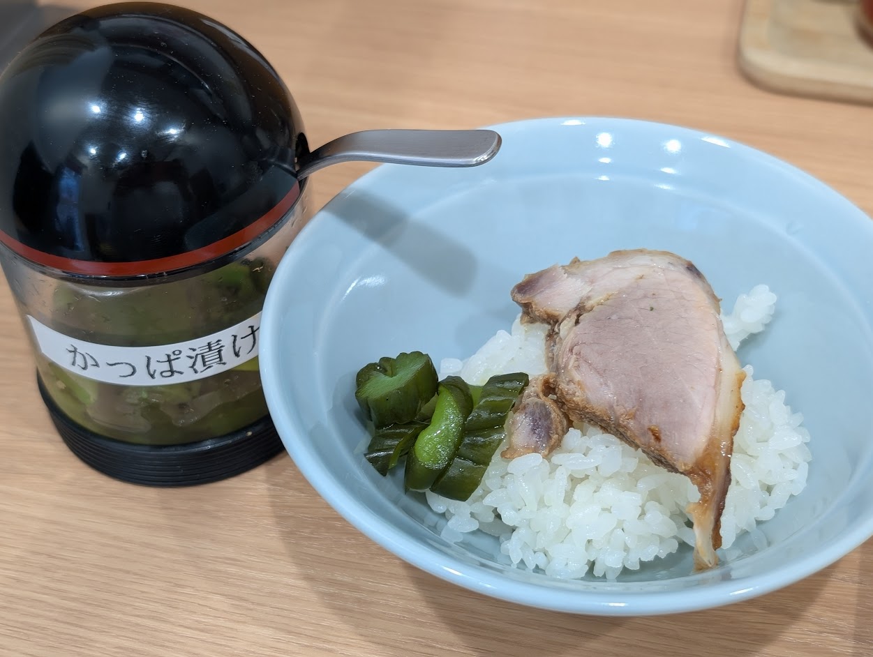 おすすめ通りチャーシューをご飯にのせてみました!かっぱ漬けも添えて…贅沢な味わいです!