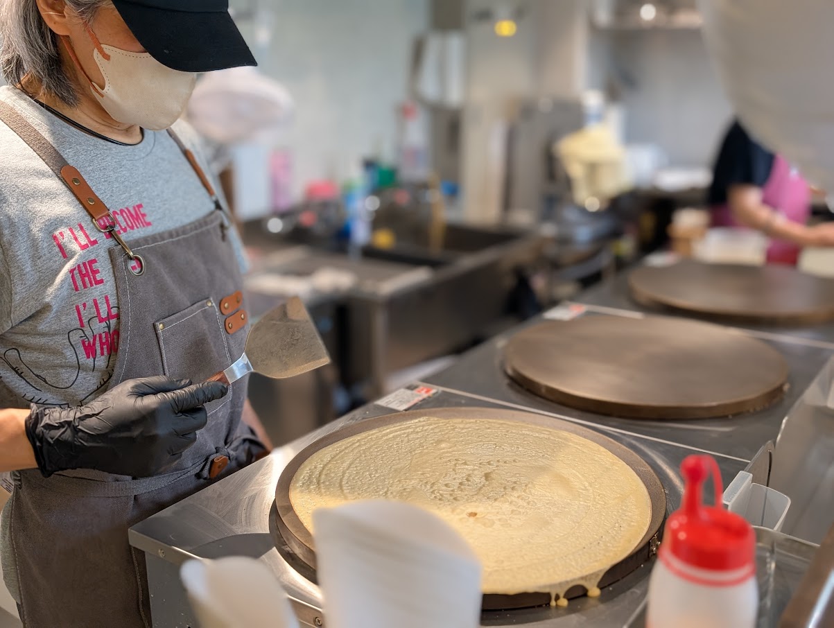 「タカハシクレープ」は、“生地が主役”のクレープ屋さん。農薬不使用の国産小麦と全粒粉を使用し、さらに“奇跡のオイル”と呼ばれるギー(精製バター)を生地にひと塗りすることで、香ばしさとコクをプラス。外はカリッと中はもっちりの、食べ応えのあるクレープが楽しめます。