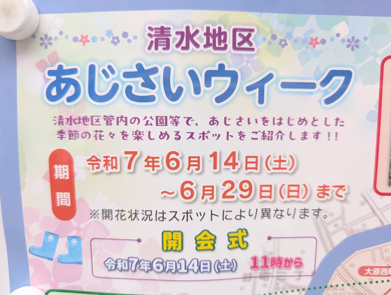 清水地区内で紫陽花を楽しめるスポットは以下の10ヶ所(予定):