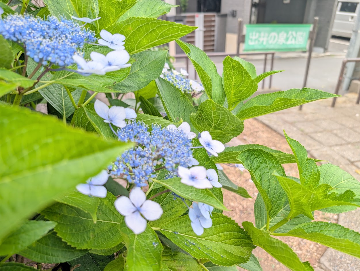 現在(6月上旬)、紫陽花の開花の様子です!出井の泉公園の紫陽花はところどころ綺麗に咲いていました!