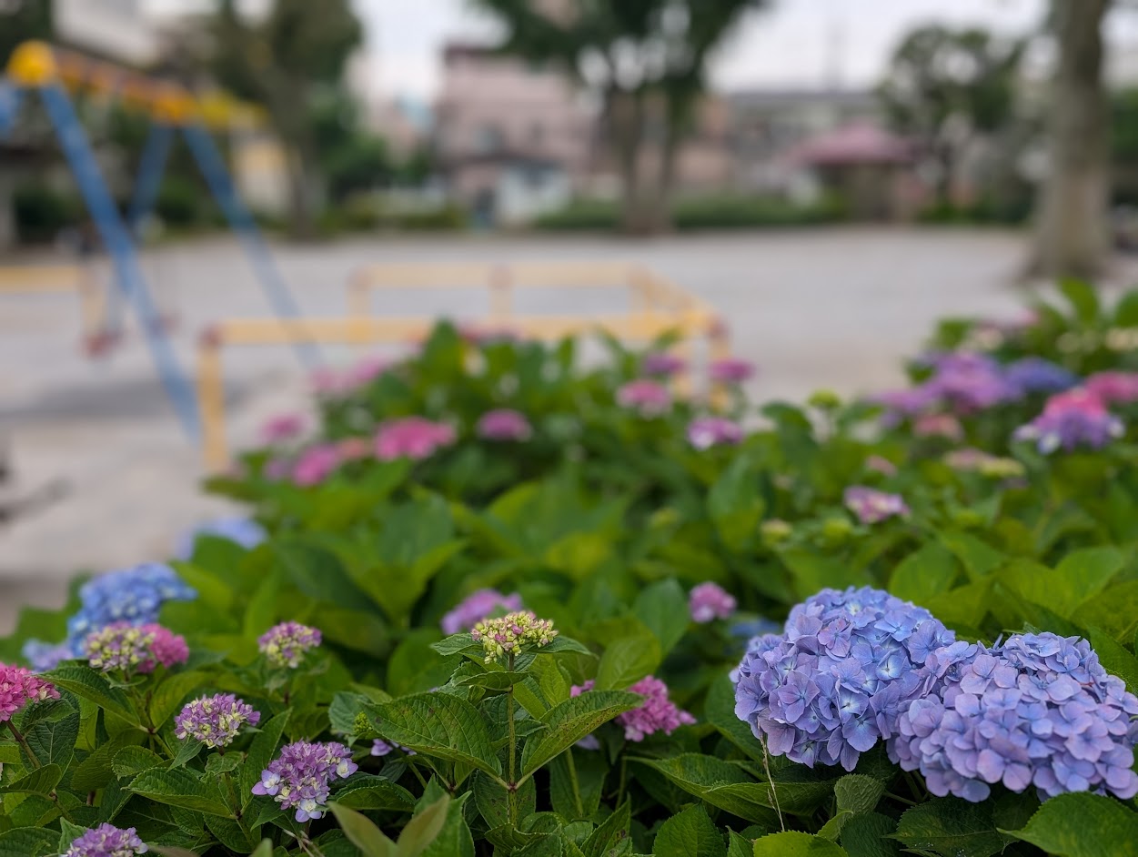 大原第二公園の紫陽花も彩り綺麗な紫陽花がところどころに咲いていました。