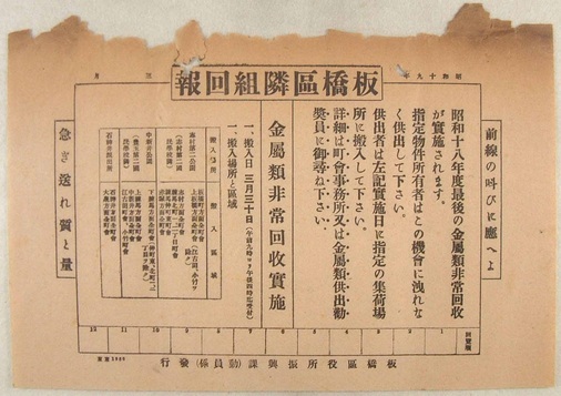 板橋区隣組回覧(金属類非常回収実施)【昭和19年】:プレスリリースより