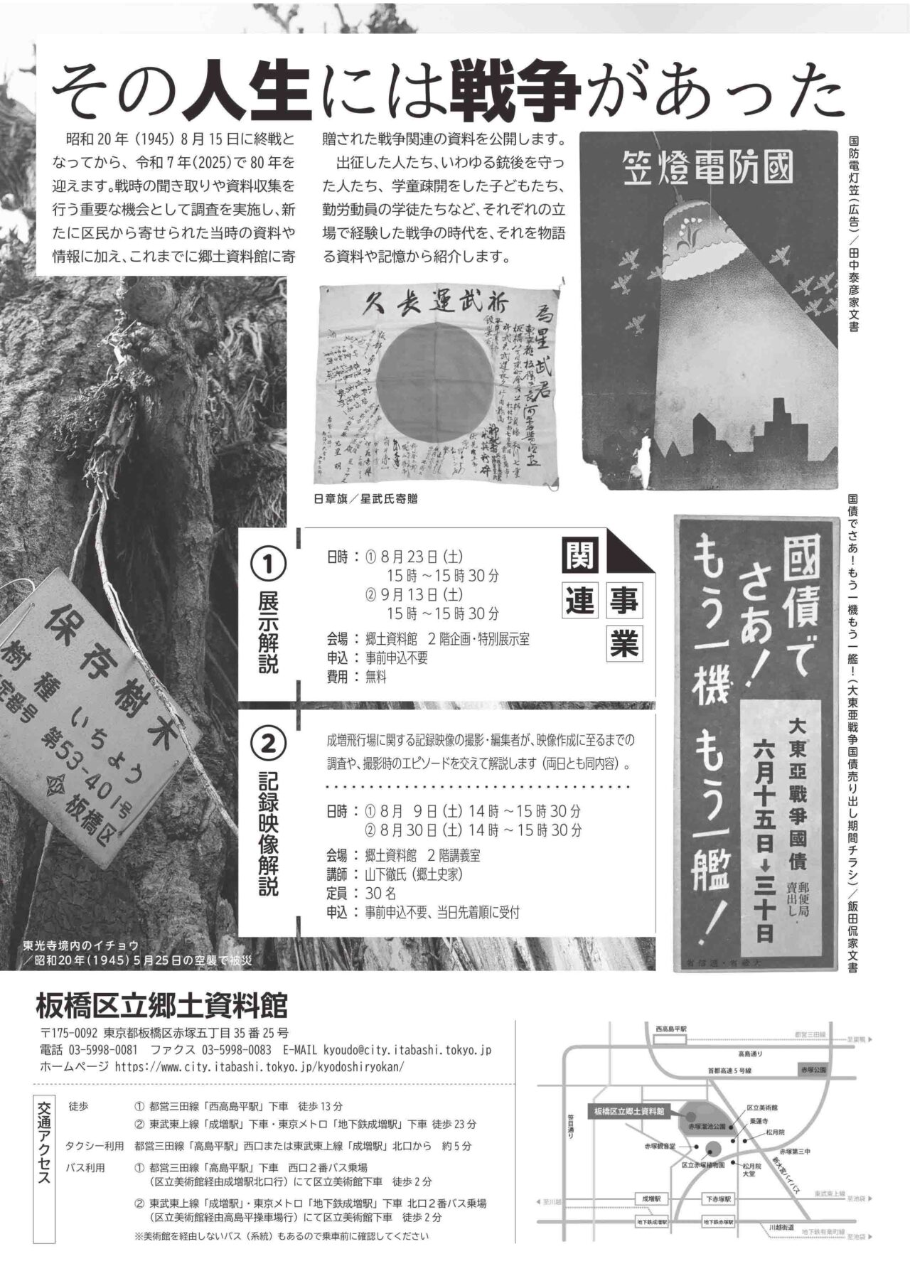 板橋区に残された“戦争の記憶”に触れる貴重な機会。ぜひご家族やご友人とともに足を運んでみてはいかがでしょうか?