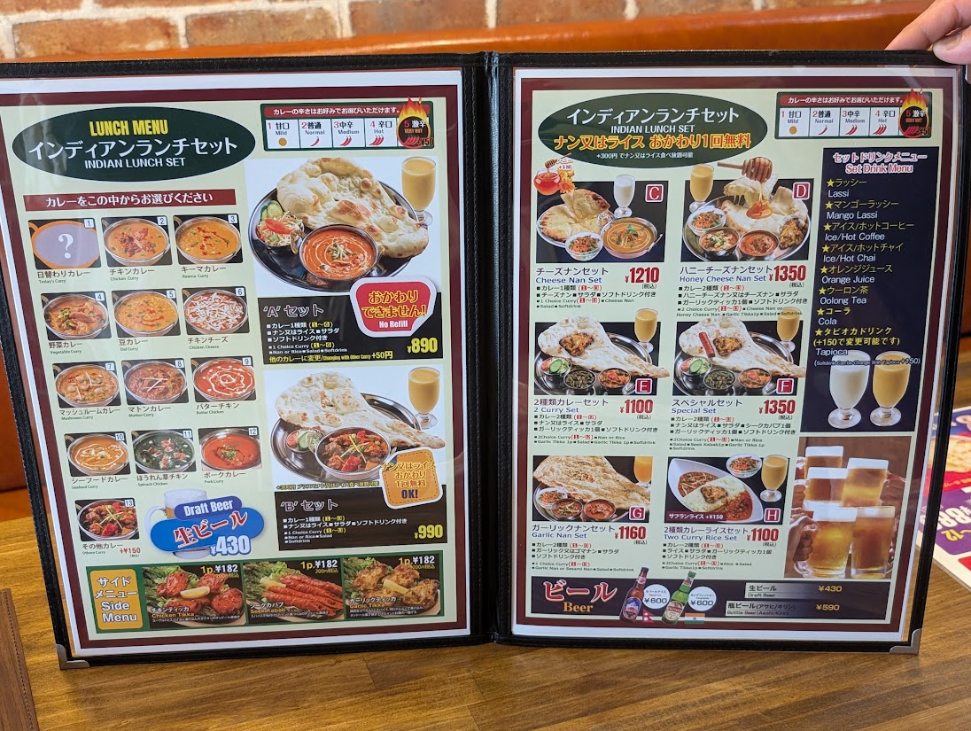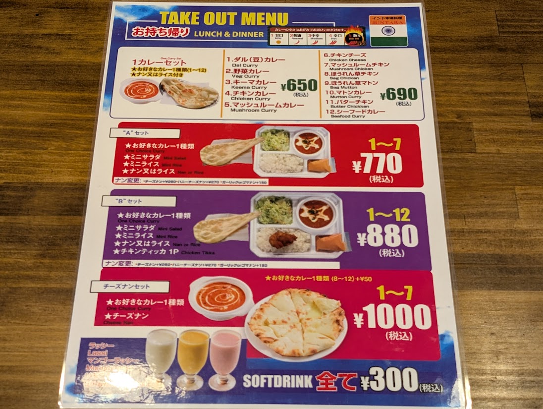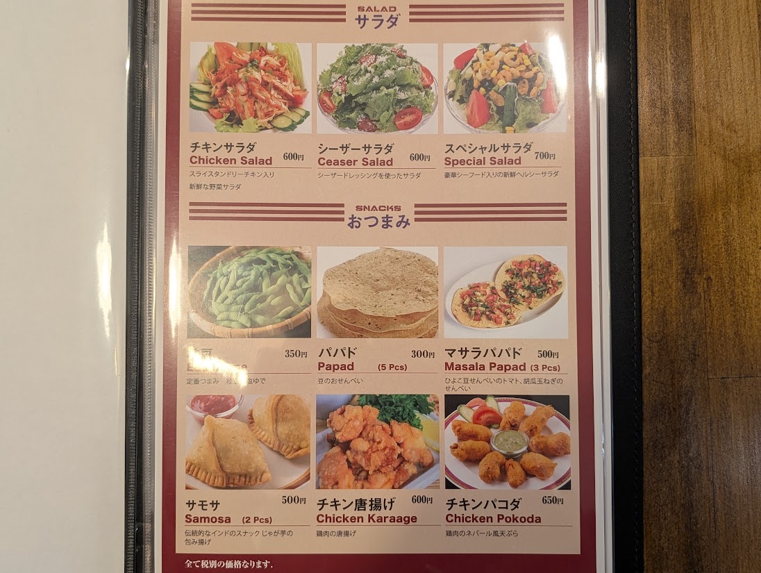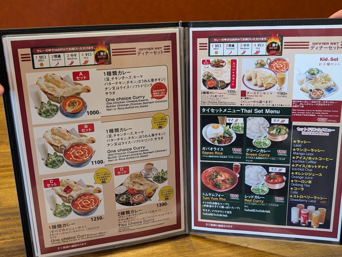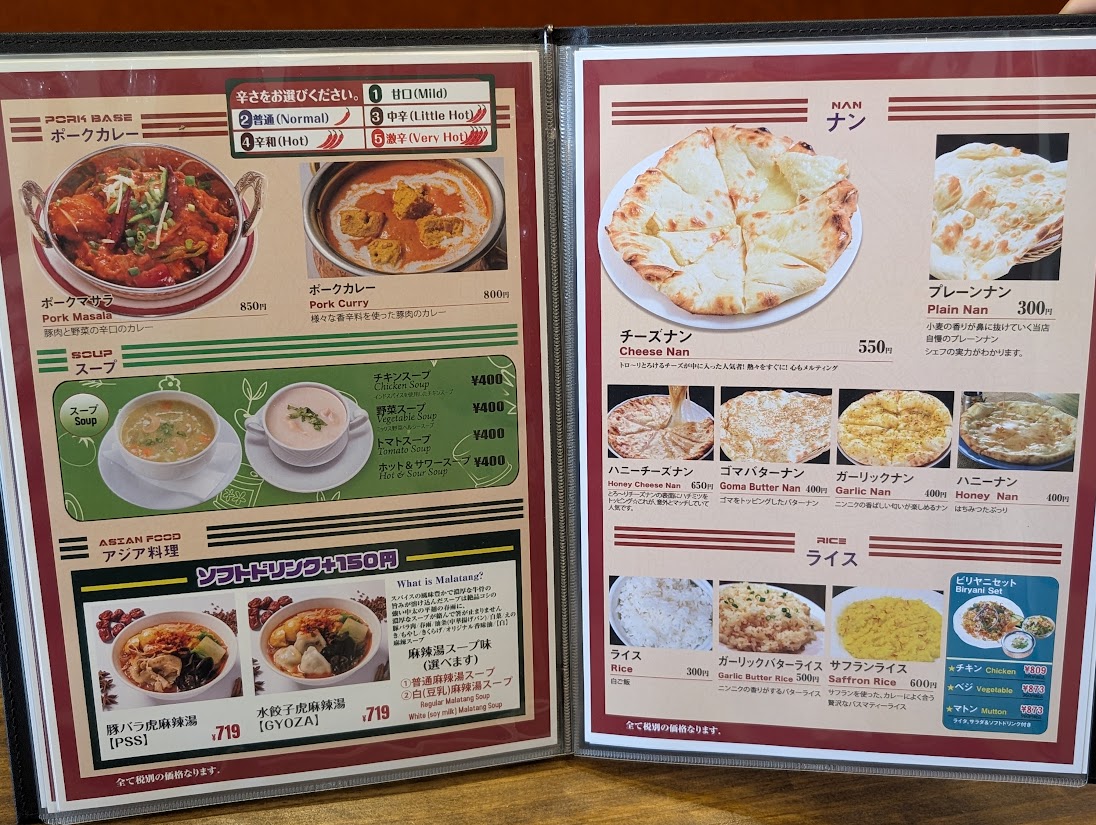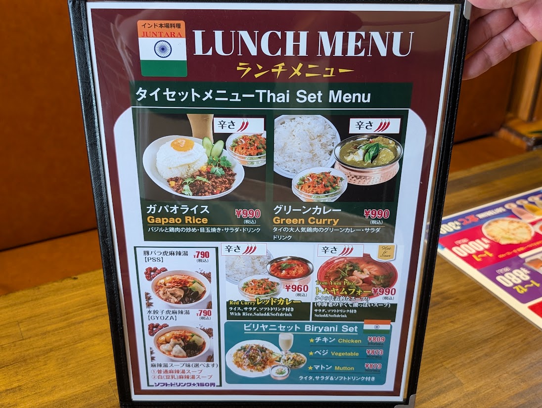 カレーはもちろん、タイ料理なども提供しており、アジアン料理好きには見逃せない一軒になりそうです。メニューはこちらです↓