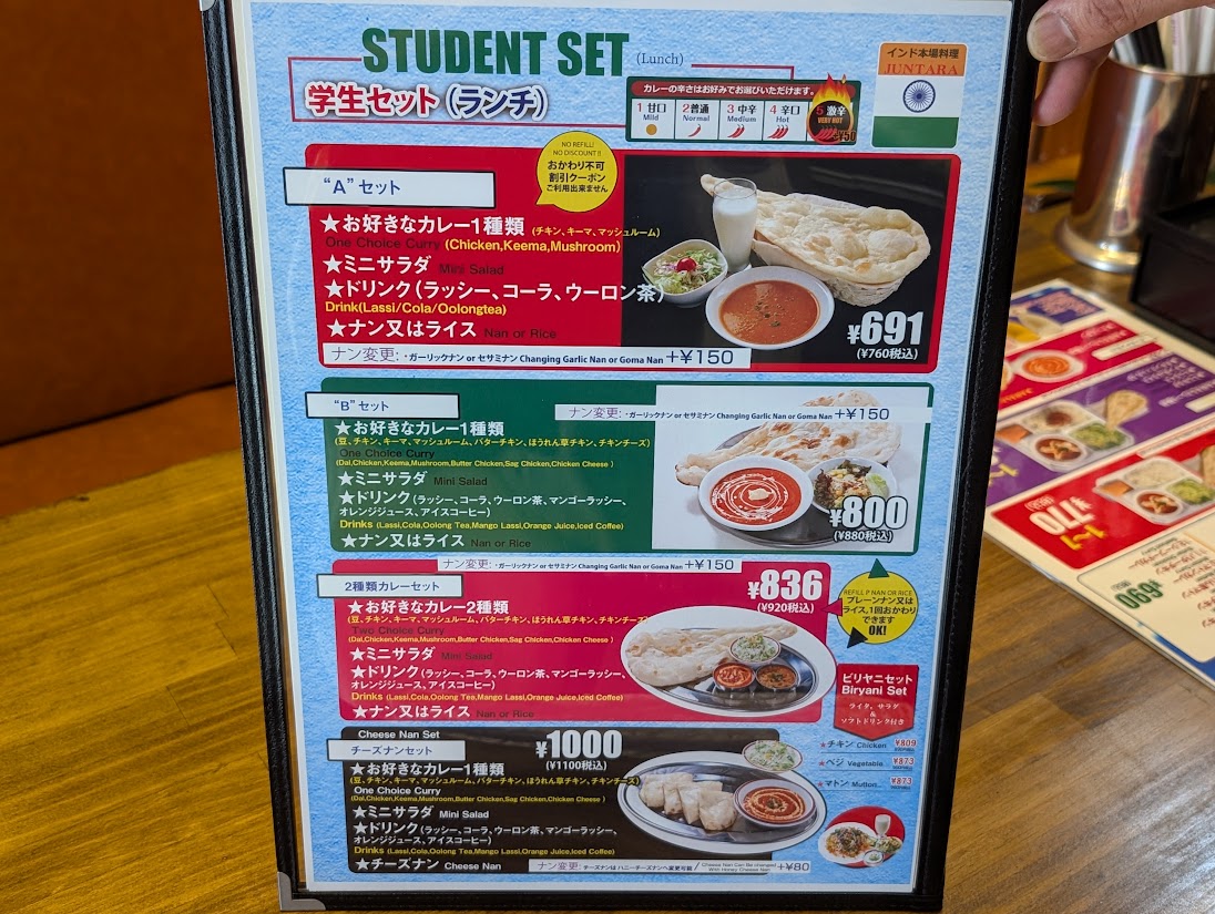 お得な学生セット(ランチ)もありました!若者には嬉しいサービスですね♪