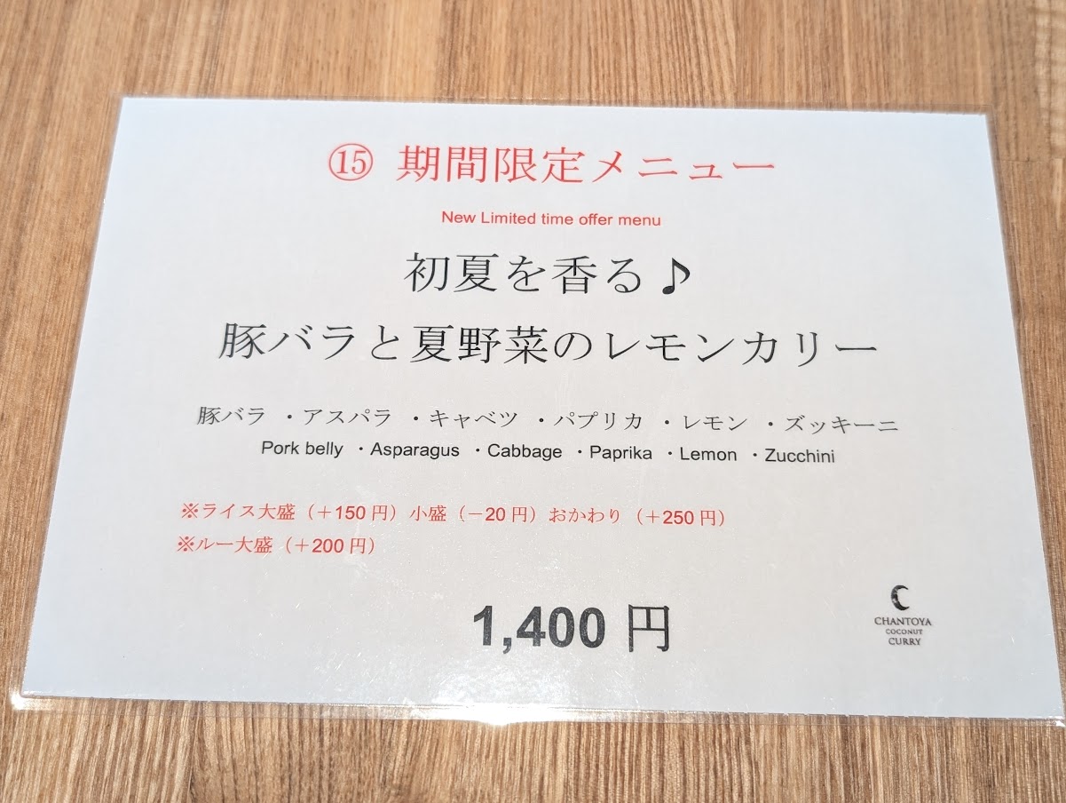 さらに、期間限定メニューも提供されており、何度訪れても新しい発見がありそうです。今季は夏らしい「初夏を香る♪豚バラと夏野菜のレモンカリー」。