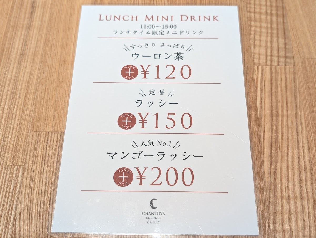 ランチタイム(11:00~15:00)には限定のミニドリンクも注文できます!