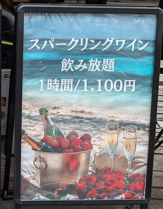 スパークリングワインはなんと1,100円(1時間)で飲み放題という贅沢さです。