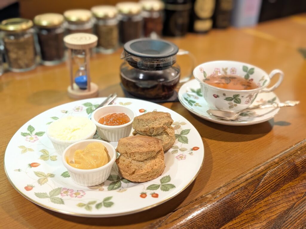 現在は予約制のアフタヌーンティー(4,950円)が中心で、紅茶とスコーンを心ゆくまで楽しめる内容です。